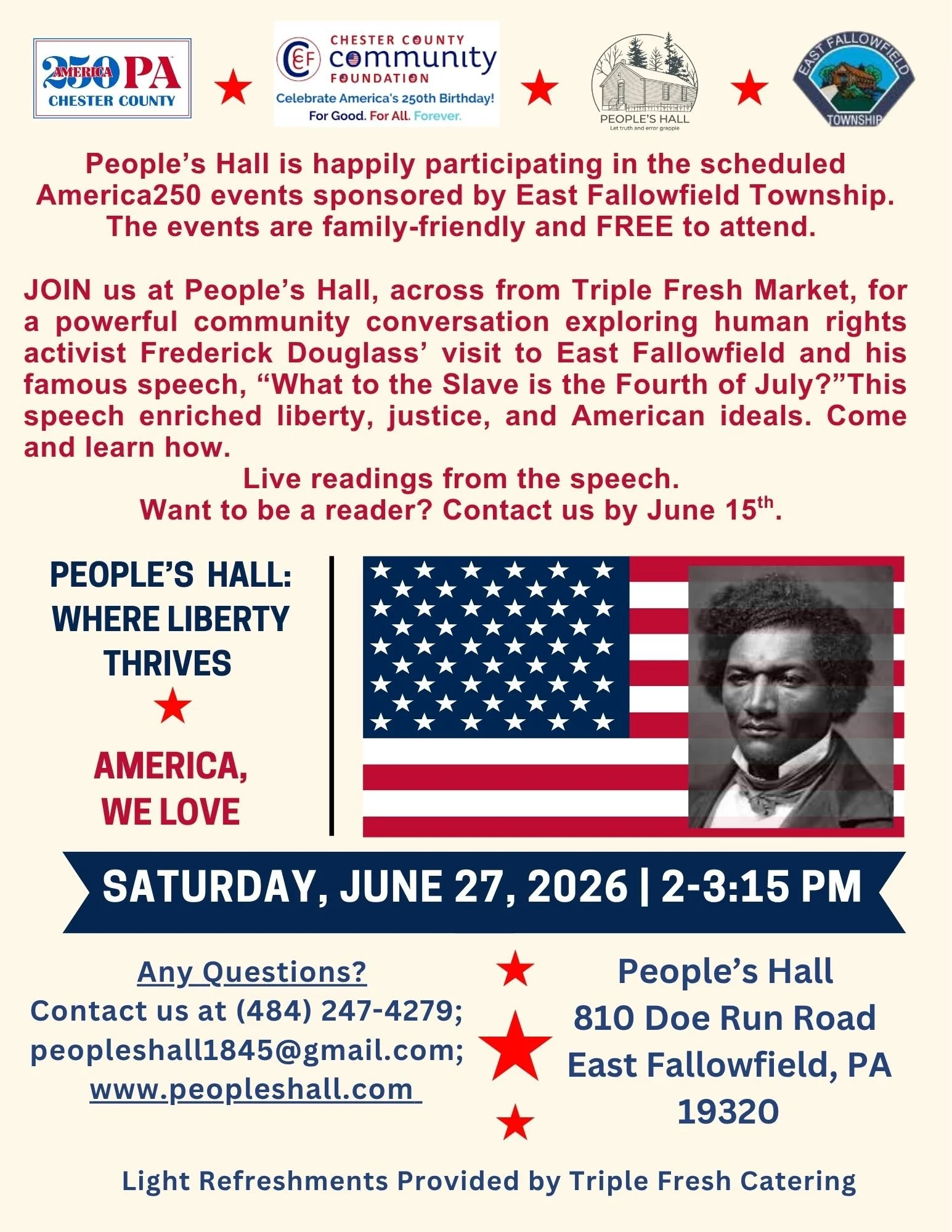 People’s Hall expresses our deepest gratitude to the Chester County Community Foundation for supporting our America250/Chester County250 programming. To read our “Dare to Declare” grant, click here.